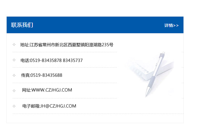 傳真:0519-83435688    郵編:213135    網址:WWW.czjhgj_com.hebeidk.com    電子郵箱:JH@czjhgj_com.hebeidk.com